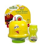 The Sesame Street Mini No-Spill Bubble Bucket Big Bird prevents bubble spills with it's No Mess design. Includes 3 wands with letters, shapes, and numbers and 2 fl oz bubble solution. Ages 3 & up.