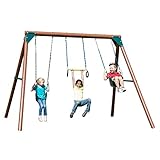 - Includes two swings, ring- trapeze bar combo, all hardware, A-frame brackets, and illustrated plans